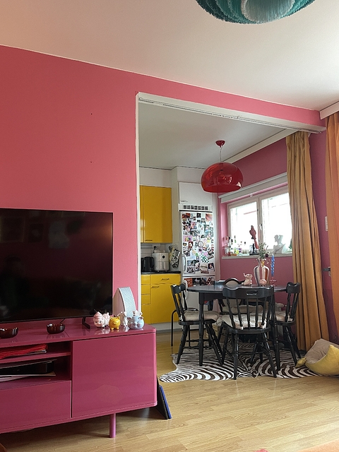 Sini Laitisen kodin jokaiseen huoneeseen kuuluvat vahvat värit. (kuva: Sini Laitinen)